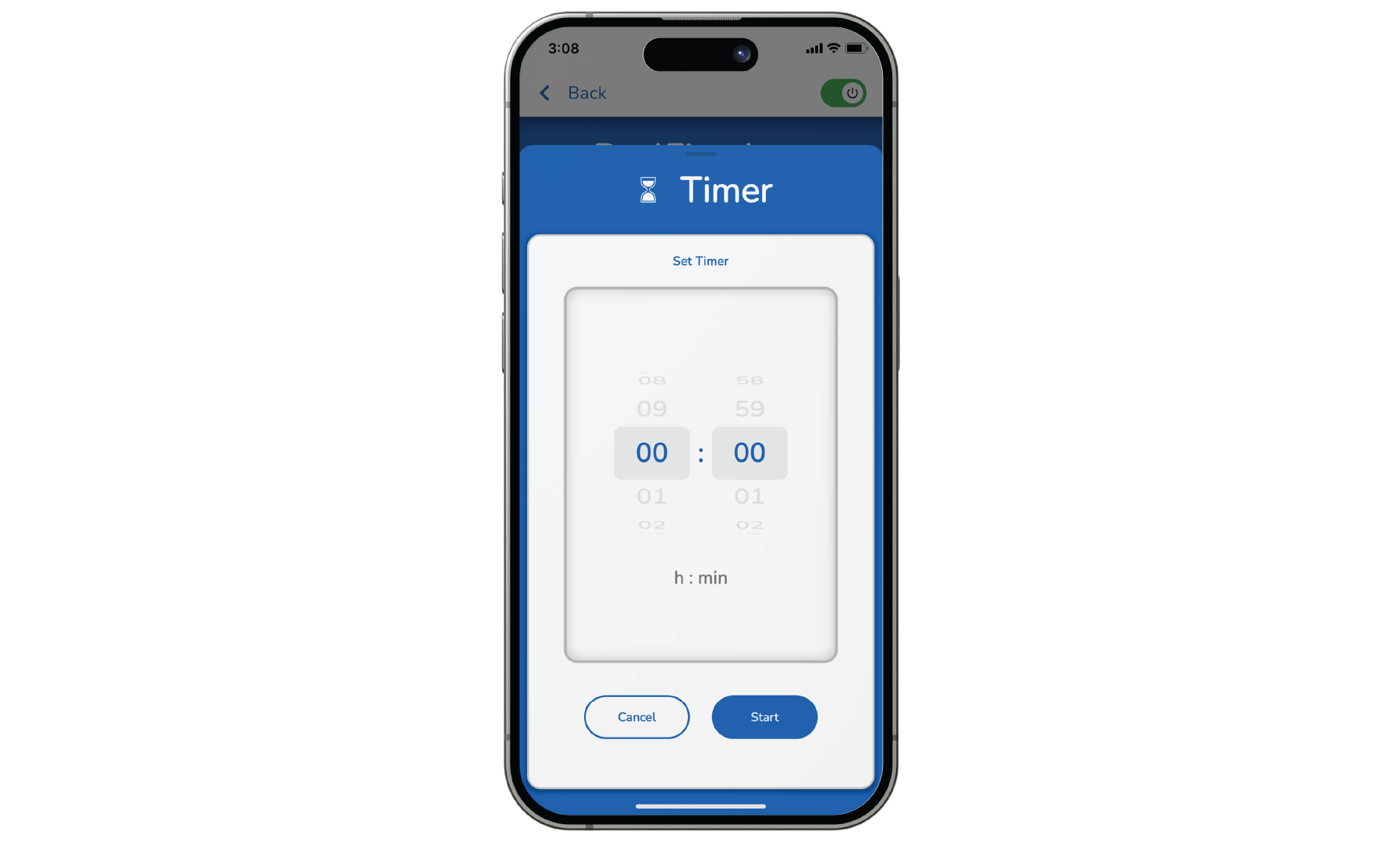 Der Countdown-Timer schaltet den Kamin nach einer festgelegten Zeit automatisch aus.