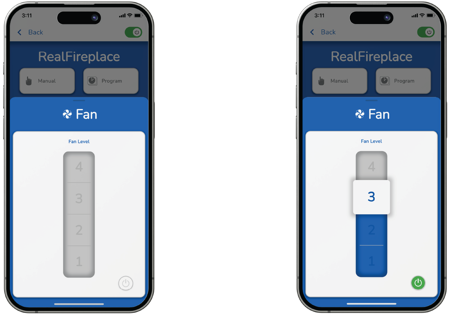 Wenn das Feuer neu gestartet wird, wechselt der Lüfter automatisch auf die zuletzt eingestellte Stufe.